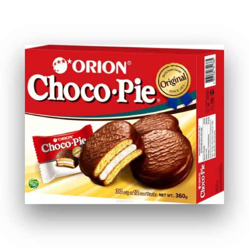 Orion is the creators of the famous Choco Pie, it is the Number 1 selling Choco Pie brand in the world. The Orion Choco Pie is the original Choco Pie, a snack cake consisting of two small round layers of chocolate-coated cake with marshmallow filling.